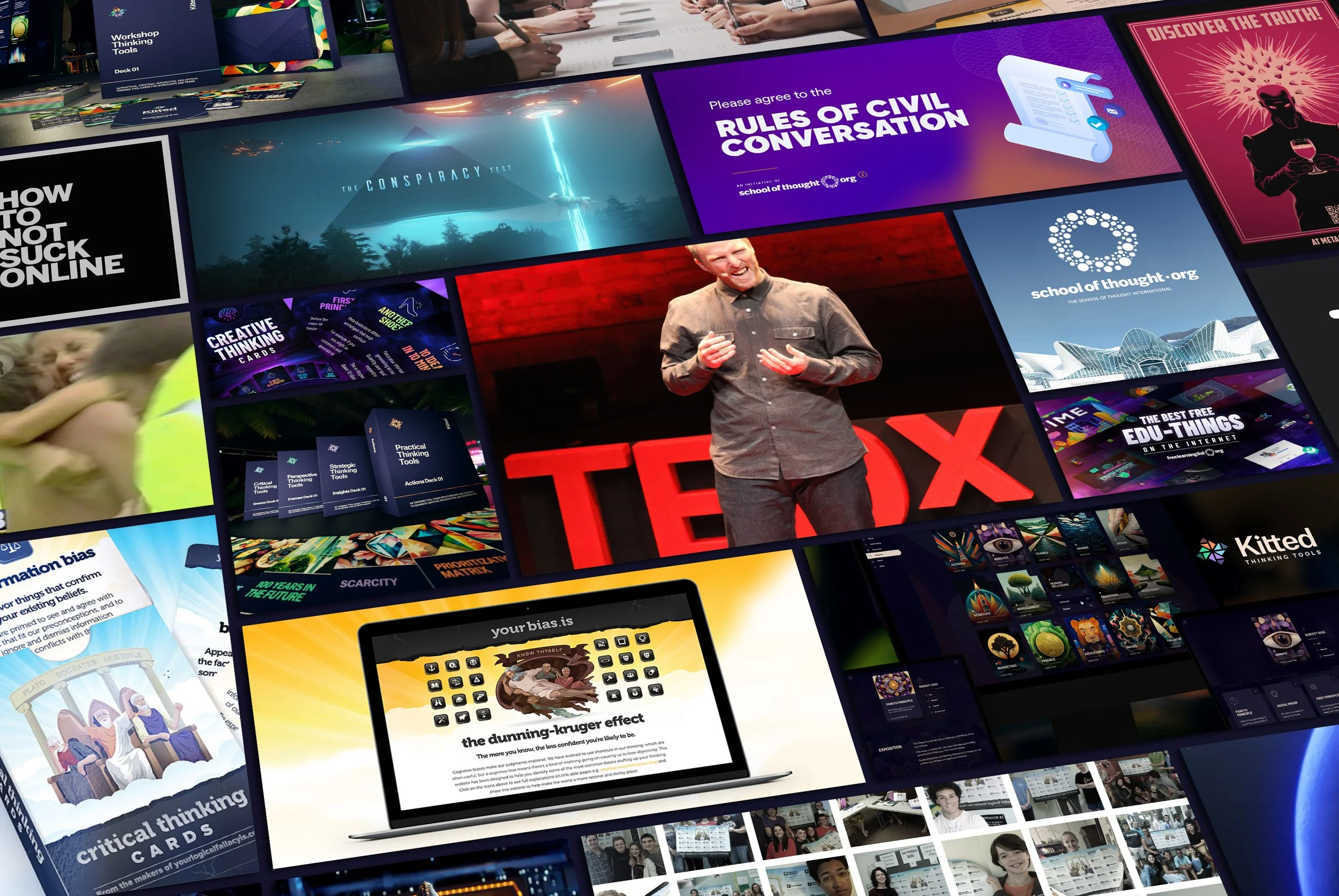 Jesse Richardson is an internationally award-winning creative director, and the founder of The School of Thought International – a non-profit which has provided free critical thinking resources to more than 30 million people worldwide in 7 languages. He is also the founder and CEO of Kitted Thinking Tools.